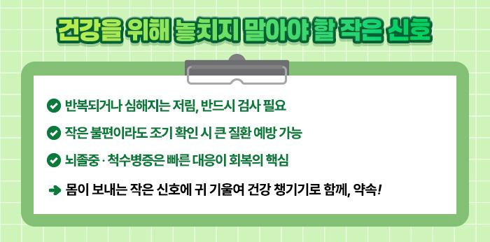 몸이 보내는 작은 신호에 귀 기울이는 것, 그것이 건강을 지키는 가장 확실한 방법입니다.