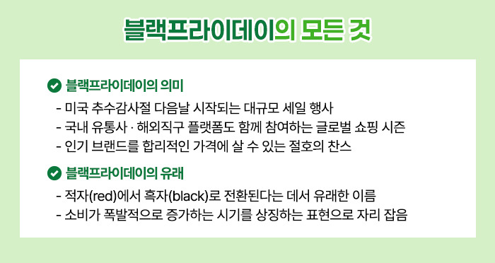 블랙프라이데이는 연말 쇼핑의 시작을 알리는 세계적인 할인 축제입니다.