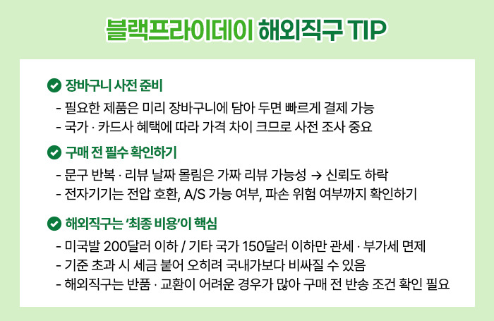 올해 블랙프라이데이, 신중한 해외직구로 더 합리적인 소비를 완성해 보세요.