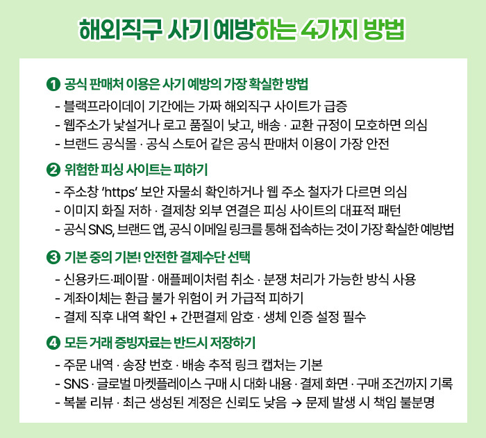 이런 기본 보안만 지켜도 해외직구 과정에서 발생할 수 있는 위험을 크게 줄일 수 있습니다.