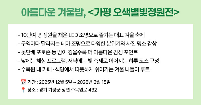 연말 분위기를 더욱 특별하게 채워줄 국내 대표 빛 축제를 소개합니다.