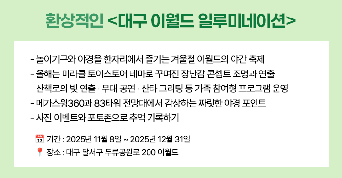 빛으로 물든 테마파크! 대구 이월드 일루미네이션