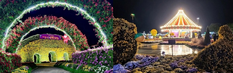 10만여 평의 넓은 야외 정원 전체를 친환경 LED 조명으로 채운 규모감은 매년 감탄을 자아냅니다.