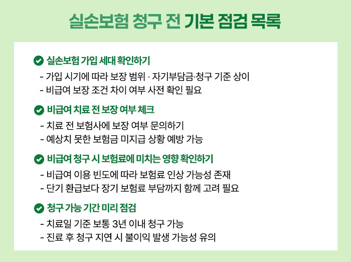 실손보험을 더 잘 활용하려면 청구 전에 몇 가지 기본 사항을 미리 점검하는 것이 좋습니다.