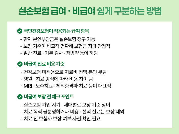 또한 비급여 치료를 받기 전에는 보험사에 보장 여부를 사전 문의하는 것이 안전합니다.
